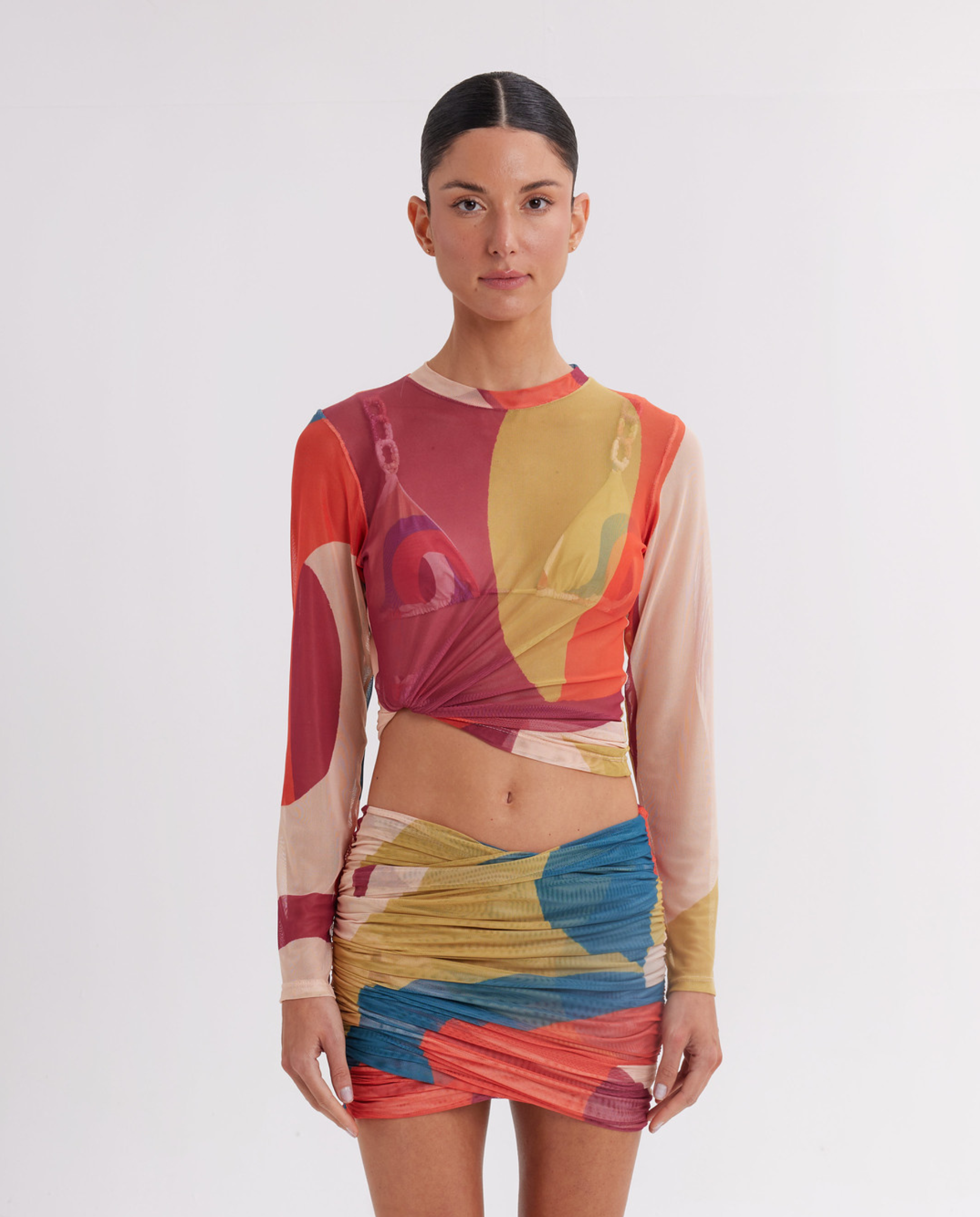 - Mini skirt in a mesh fabric